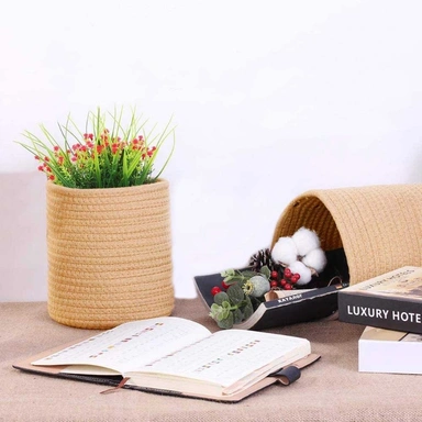 Cotton Basket for Storage Foldable wardrobe Multipurpose use Laundry Basket (12"X12") Baby Bucket Hamper Cloth Storage Box Kitchen, Office And Living Room (Yellow)