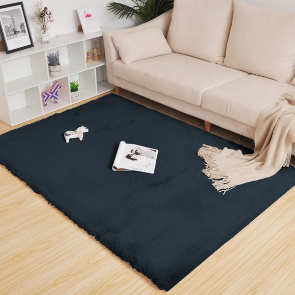 Luxe Home International Ruffle Floor Rug Rabbit Fur 1000 Gsm Living Room Foot Mats Anti Skid Water Absorbent Easy Machine Washable Rectangular Rug For Bedroom|Floor|4 X 6 Ft|Anthra|Pack Of 1