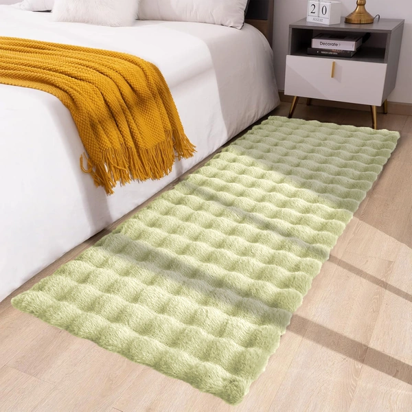 Luxe Home Bubble Rabbit Fur Floor Runner Super Soft , Washable, Anti Skid Runners for Bedroom - ( 2x5 Feet, Gold )