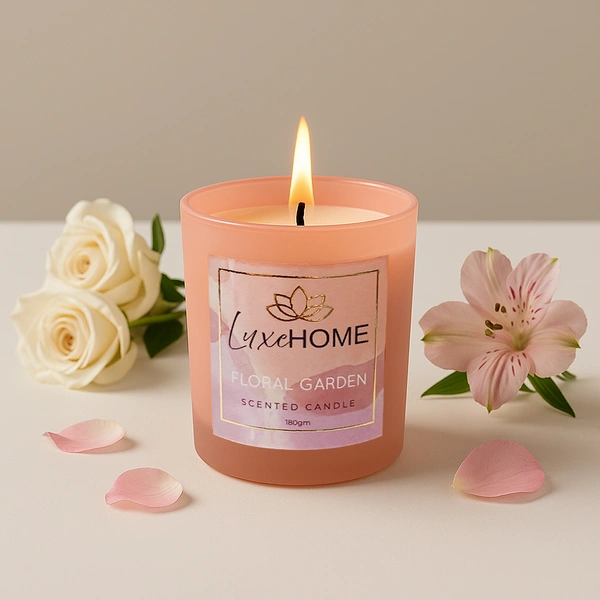 Luxe Home International Floral Garden Scented Candle 7.5x7 cm for Home Decor Bedroom Living Room Spa Bathroom Party Romantic Dinner and Gifting Pack of 1 Candle