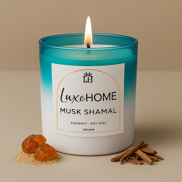 Luxe Home International Musk Shamal Scented Candle 7.5x7 cm for Home Decor Bedroom Living Room Spa Bathroom Party Romantic Dinner and Gifting Pack of 1 Candle