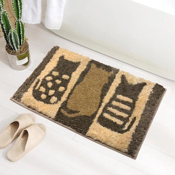 Luxe Home Macau Cat Bath Mat (40x60 cm) Super Soft Microfiber, Anti Slip Backing, Washable Bathroom Mat Perfect for Bedroom - Chocolate