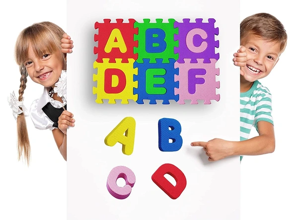 Kids Puzzle Mat 36 Colorful Eva Tiles Play or Interlocking Learning Alphabet and Number ( Multicolors , Large , Pack of 1 )