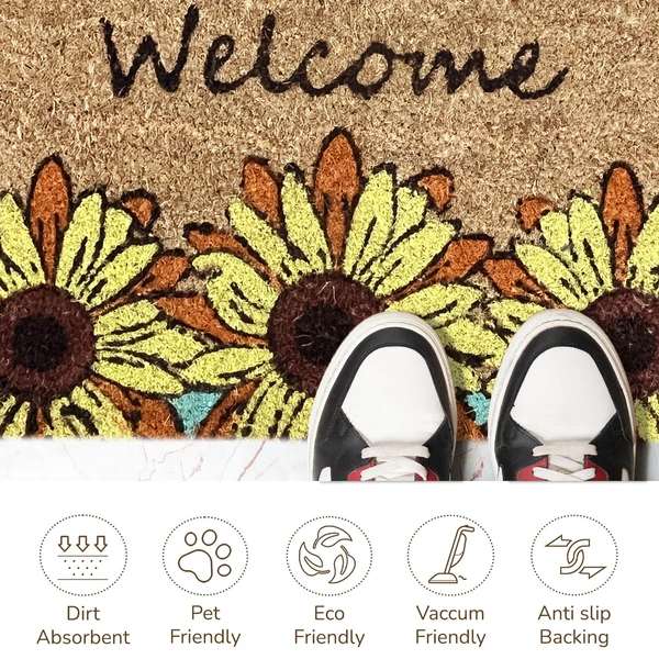 Welcome Floral Design Coir Doormat for Entrance (71 x 45 cm )