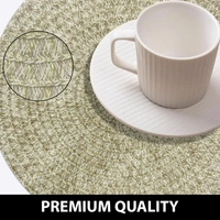 - Luxe Home round PVC placemats are perfect for daily dining, festive occasions, family get-togethers, and restaurants adding a touch of elegance to any setting. Made from high-quality heat-resistant PVC material, these mats are durable, flexible, and easy to maintain.