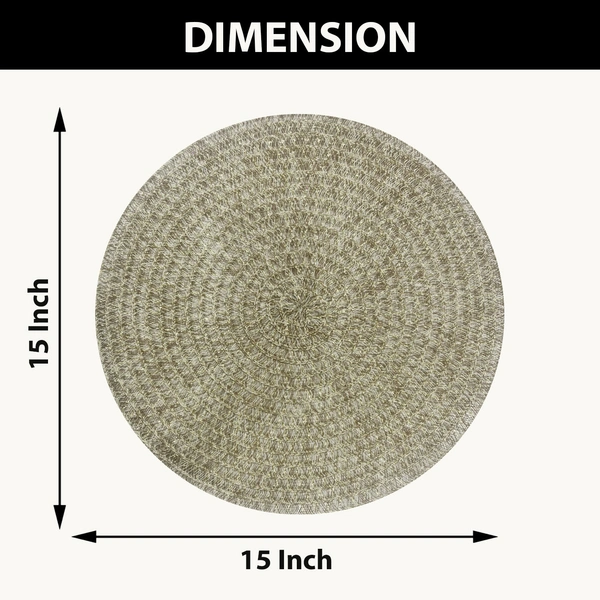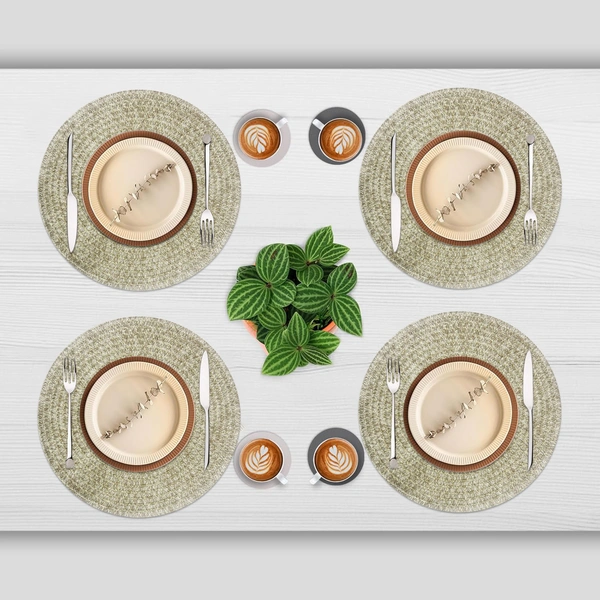 Luxe Home International PVC Light Gold Plain Weave Design Round Dining Table Placemat , Heat Resistant, Non-Slip Table Mat for Kitchen & Home (15x15 Inches) Pack of 4