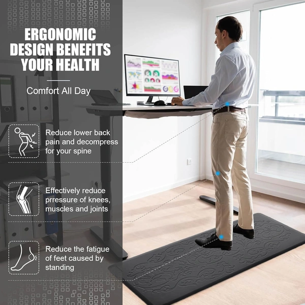 - Comfortable: The Luxe Home anti-fatigue kitchen floor mat provides thick, cushioned support to help improve circulation and posture and to ensure that you are able to stand comfortably while working in the kitchen or at any workstation.