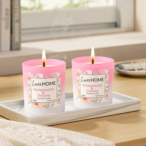 Luxe Home Scented Glass Jar Candles Set |Scented Candle Set of 2 |Premium Fragrance Jar Candle for Home Decor & Relaxation | Non- Toxic Long Burning, Elegant Candle. (Pack of 2)