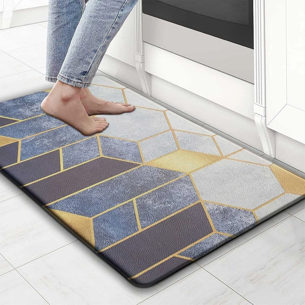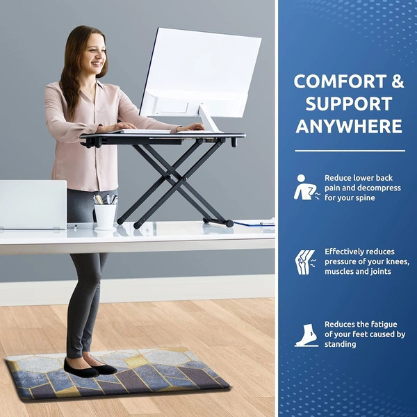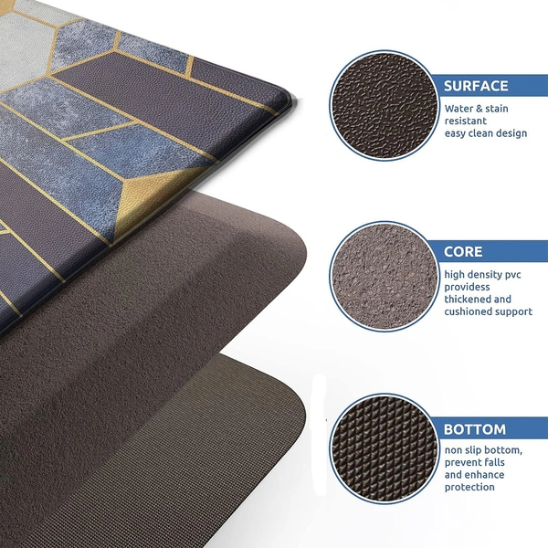 Anti-Fatigue Kitchen Mat Non-Slip Cushioned Comfort Mat - Geometric Pattern Standing Desk Mat - Waterproof and Easy to Clean for Home and Office
