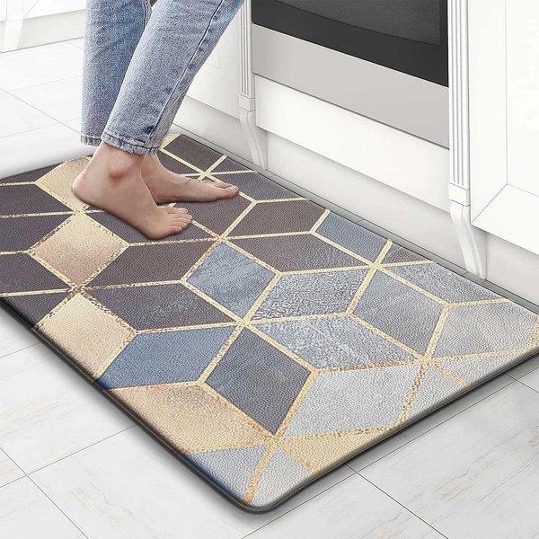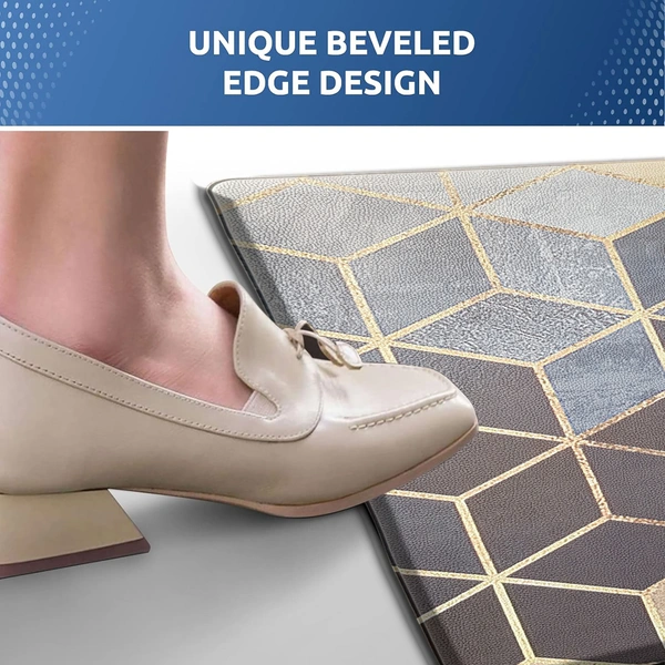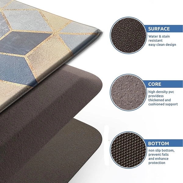 Anti-Fatigue Kitchen Mat Non-Slip Cushioned Comfort Mat - Geometric Pattern Standing Desk Mat - Waterproof and Easy to Clean for Home and Office