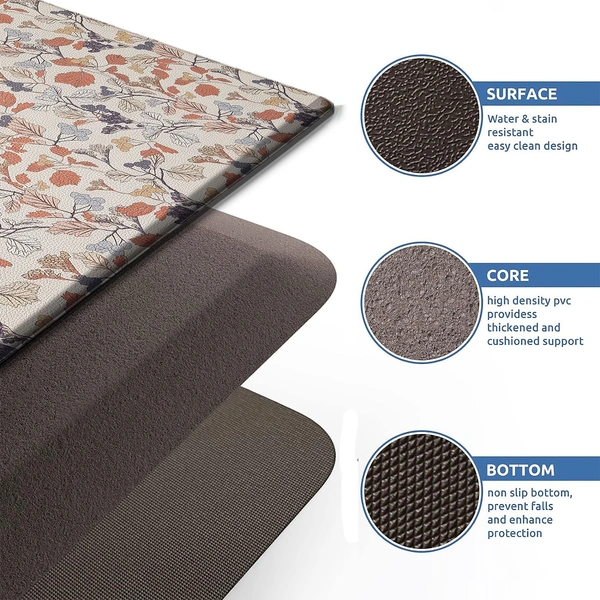 Kitchen Mat Anti-Fatigue Non-Slip Cushioned Comfort Mat - Geometric Pattern Standing Desk Mat - Waterproof and Easy to Clean for Home and Office