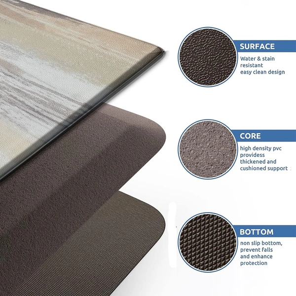Anti-Fatigue Kitchen Mat Non-Slip Cushioned Comfort Mat - Geometric Pattern Standing Desk Mat - Waterproof and Easy to Clean for Home and Office