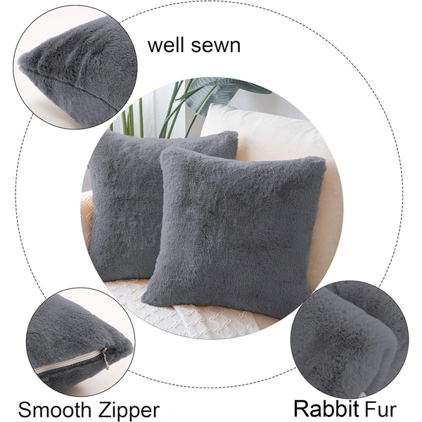 Cushion Cover 16 inch x 16 inch Duble Side Rabbit Fur Covers Set of 2 for Sofa, Bedroom, livingroom