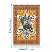 Luxe Home International Polyester White Tiger Design Carpets with Tassel Latex Backing Carpet for Hall, Living Room, Floor Rug, Bedroom Area Rug (3x5ft Multi)