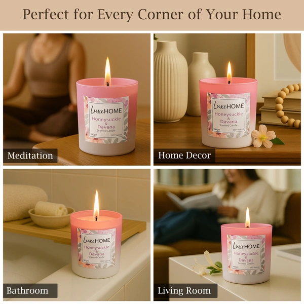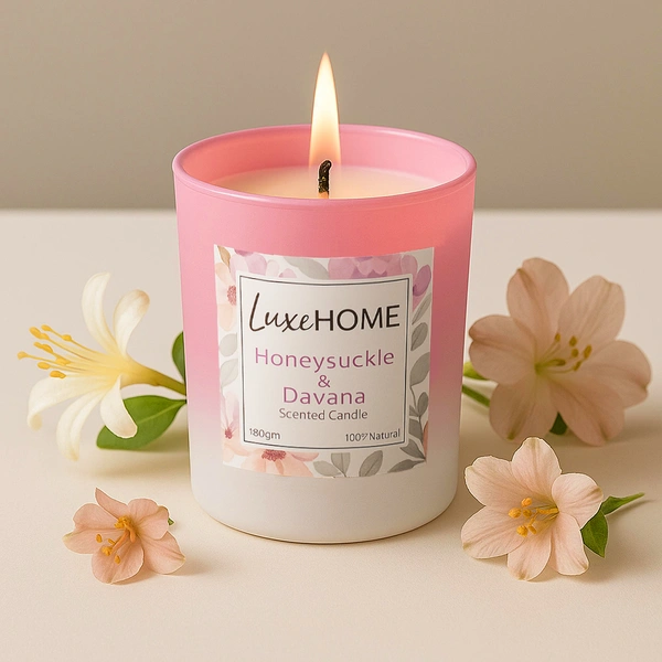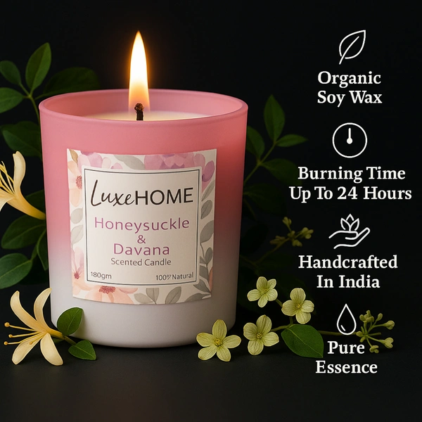 Luxe home international honey suckle davana scented candle 7.5x7 cm for home decor bedroom living room spa bathroom party romantic dinner and gifting pack of 1 candle same de