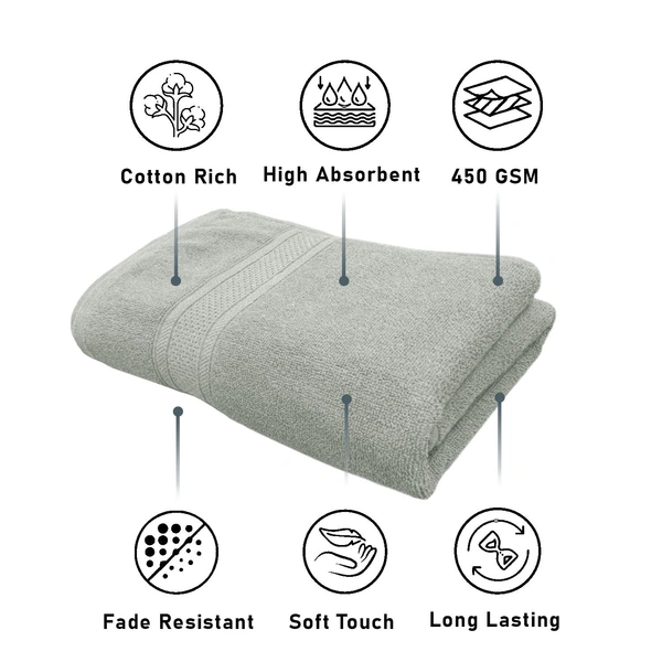 Luxe Home Cotton Bath Towel 450 GSM Quick Dry Large Size Bathroom Towels for Men & Women, Home, Kitchen, Gym, Spa (70x137 cm, Grey)