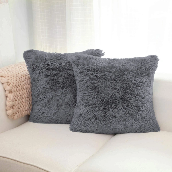 Luxe Home Cushion Cover Marino Fur Sold Design Ultra Soft for Home Decor, Sofa, Bedroom, Fernituer, Living Room Set of 2 ( 16"x16", Grey )