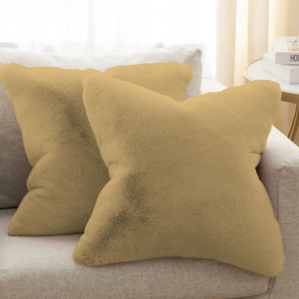 Luxe Home Cushion Cover Rebbit Fur Sold Design Ultra Soft for Home Decor, Sofa, Bedroom, Fernituer, Living Room Set of 2 ( 16"x16", Anti Gold )