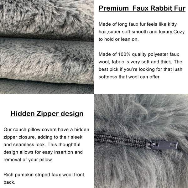 Luxurious Plush Cushion Covers Set of 2, 16x16 Inch, Soft Faux Fur Decorative Cushion Covers for Sofa, Chair, Bed, and Bedroom - Ideal for Kids, Cozy