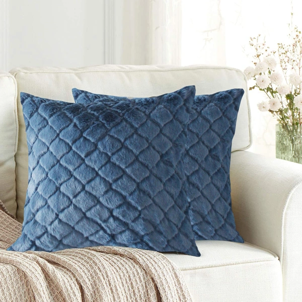 Rabbit Fur Diamond Design Ultra Soft Cushion Cover Both Side Fur for Home Décor, Sofa, Bedroom, Festival Gifting, Living Room 16x16 Set of 2