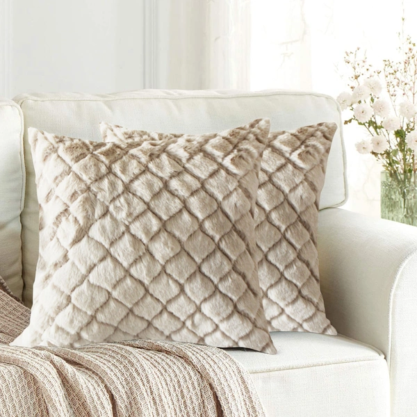 Rabbit Fur Diamond Design Ultra Soft Cushion Cover Both Side Fur for Home Décor, Sofa, Bedroom, Festival Gifting, Living Room 16x16 Set of 2