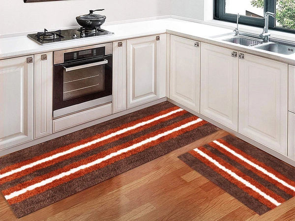 Runner Stripe Microfiber 1600 GSM Anti-Skid ( Terra , 58 Cm x 140 Cm + 38x58 Cm , Pack of 2 )