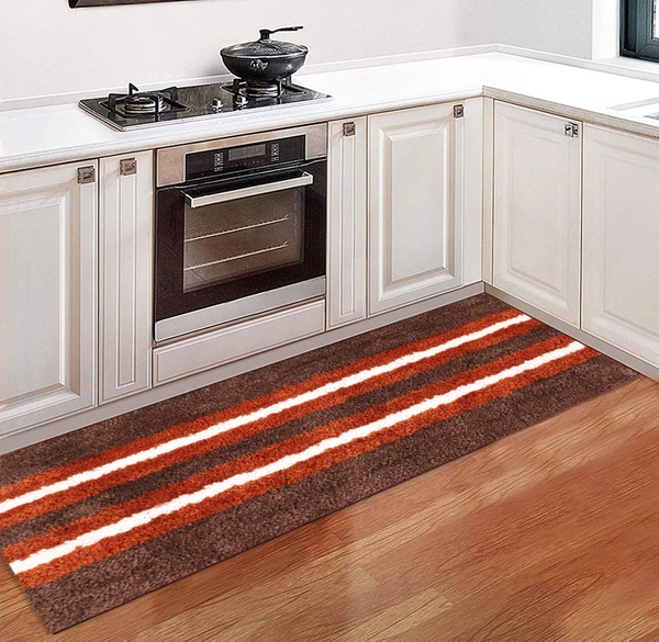 Runner Stripe Microfiber 1600 GSM Anti-Skid ( Terra , 58 Cm x 140 Cm , Pack of 1 )
